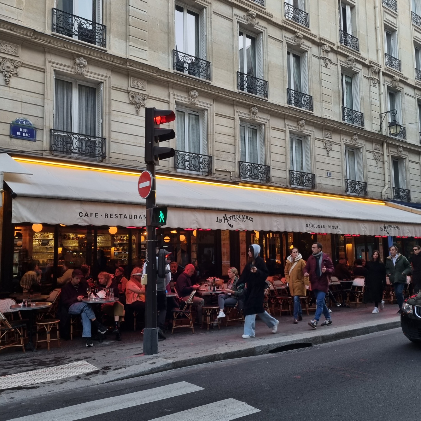 Les Antiquaires 레스토랑은 오르세 미술관 바로 옆에 위치해 있습니다. (13 Rue du Bac, 75007 Paris, France) 때문에 주변에는 다양한 상점들이 즐비해 있습니다. 센강을 기준으로 아래쪽으로 걸어가다보면 그 중 프랑스 빈티지 스타일의 접시를 구경할 수 있는 아스티에 드 빌라트 (Astier de Villatte) 상점이 있습니다. 이미 한국에서도 유명한 이 가게는 투박하면서도 정교하고 매우 가벼운 흰색 도자기 그릇을 파는 아주 유명한 상점입니다. 제가 방문했을 당시 매장 윈도우에 크리스마스 트리를 장식할 수 있는 색유리 오너먼트로 장식이 되어있어 매우 아기자기한 분위기를 연출하고 있었습니다.